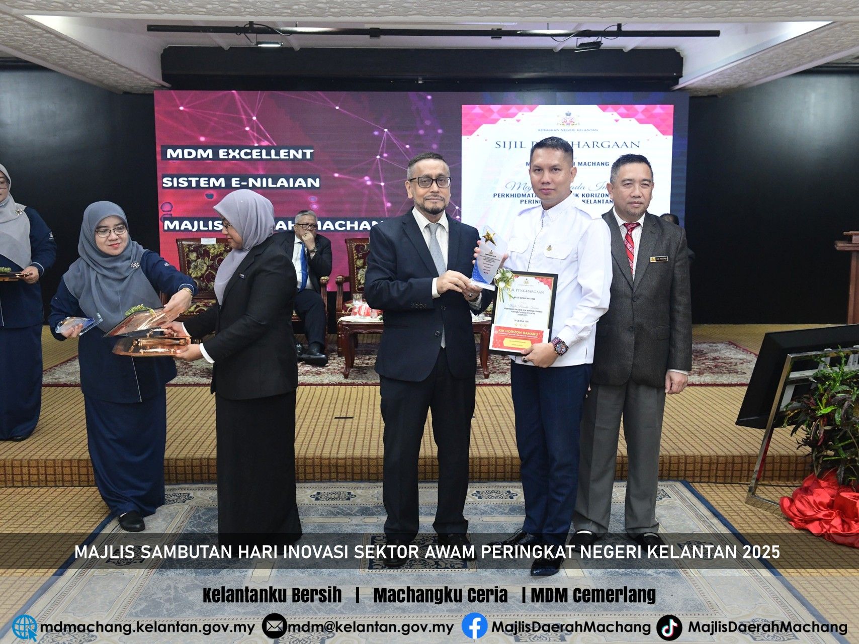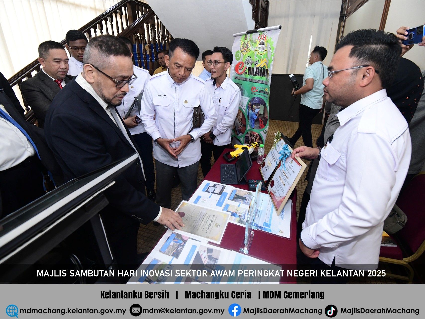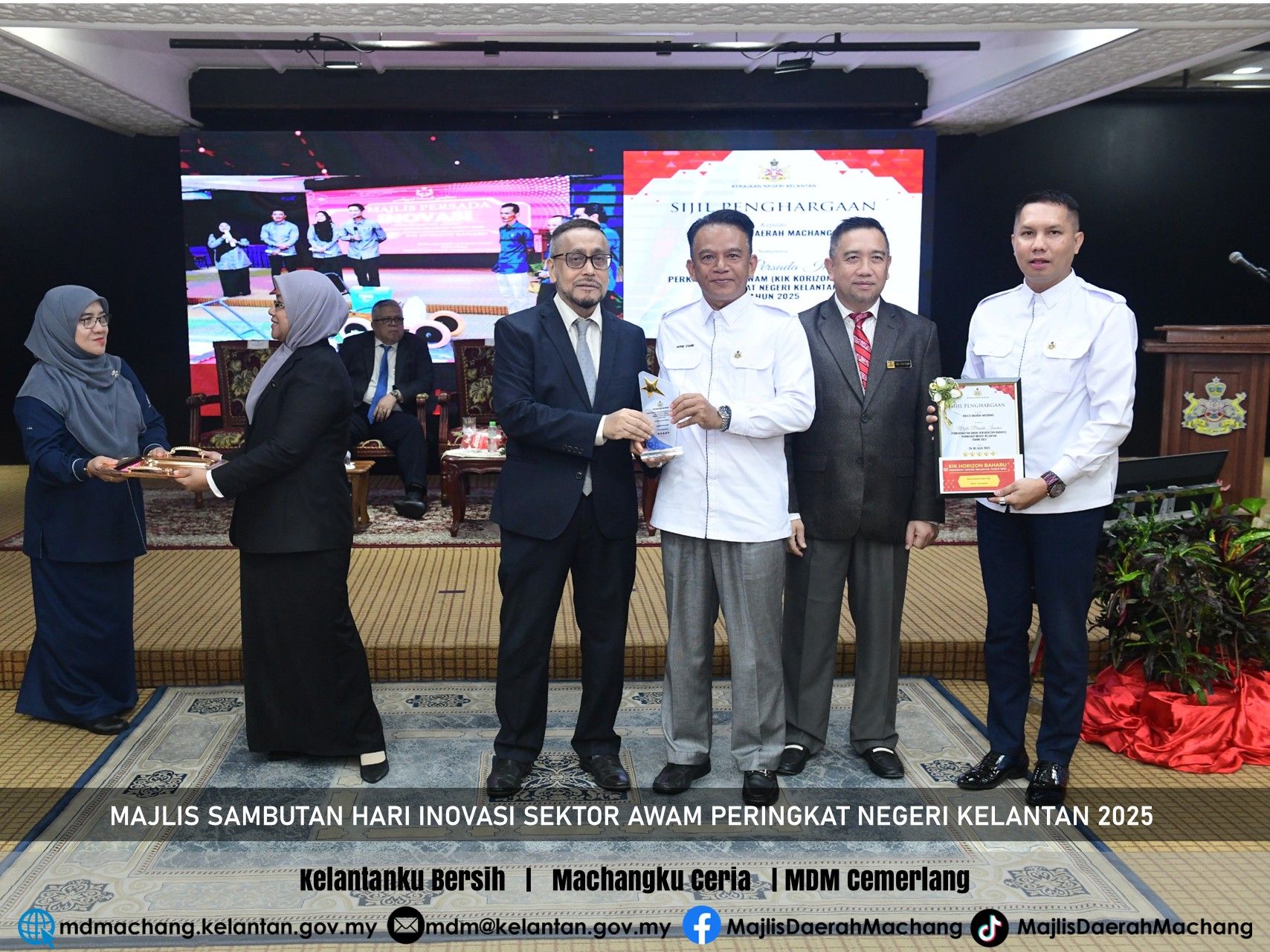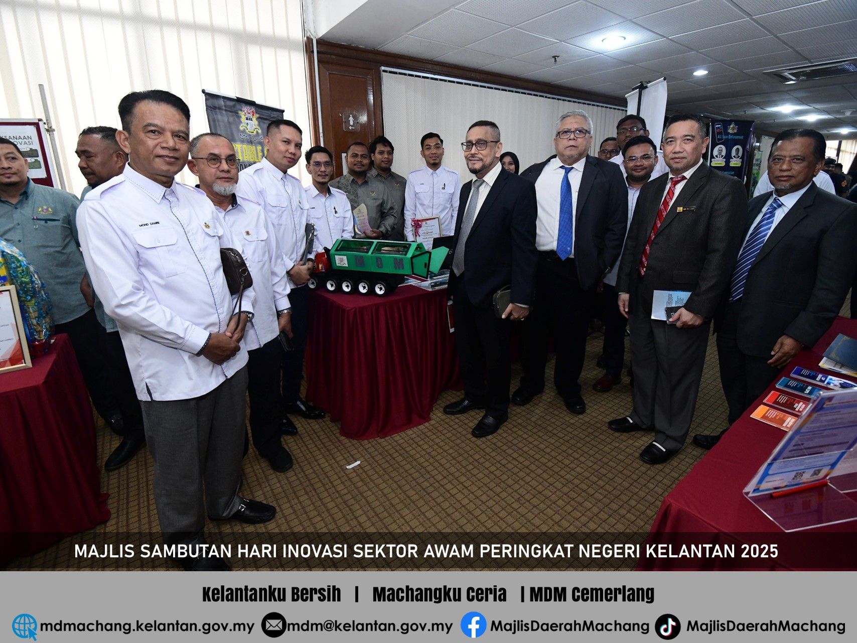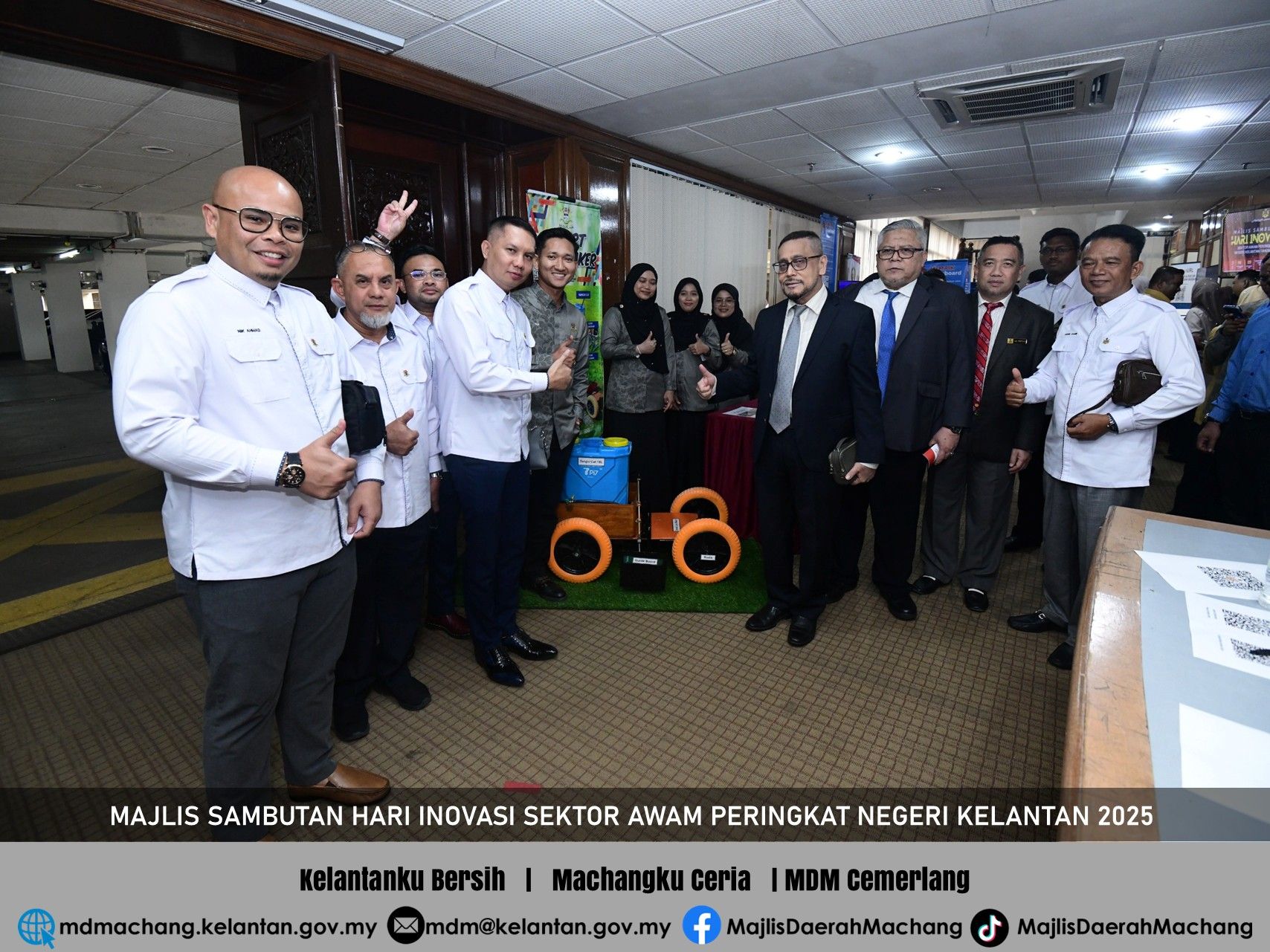 Majlis Daerah Machang merakamkan setinggi-tinggi tahniah dan penghargaan kepada pasukan inovasi yang telah meraih kejayaan di Majlis Sambutan Hari Inovasi Sektor Awam Peringkat Negeri Kelantan 2025, yang telah dirasmikan oleh Yang Berhormat Mulia Tengku Kaya Perkasa Dato' Dr. Tengku Mohamed Faziharudean Al-Haj bin Tengku Feissal.