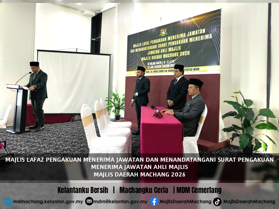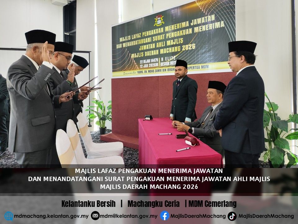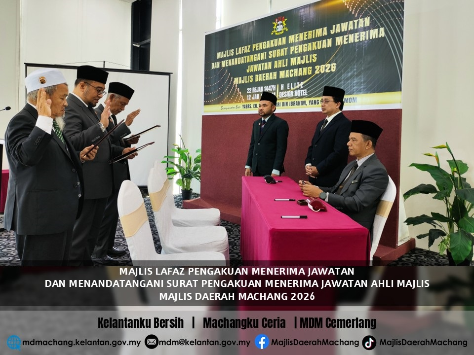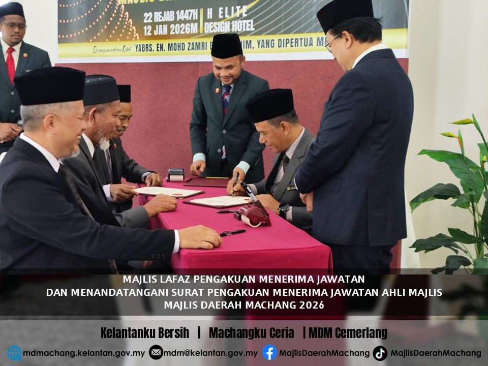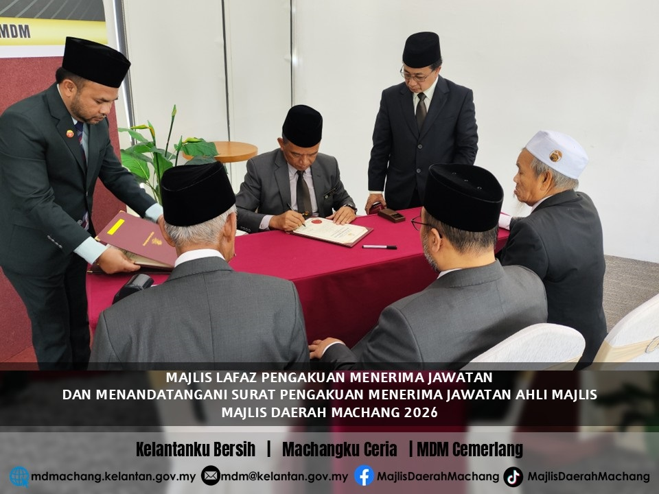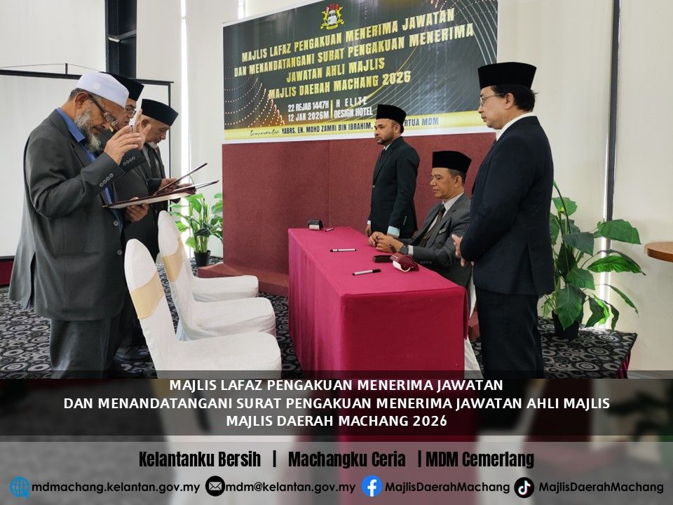 MAJLIS LAFAZ PENGAKUAN MENERIMA JAWATAN DAN MENANDATANGANI SURAT PENGAKUAN MENERIMA JAWATAN AHLI MAJLIS, MAJLIS DAERAH MACHANG 2026.