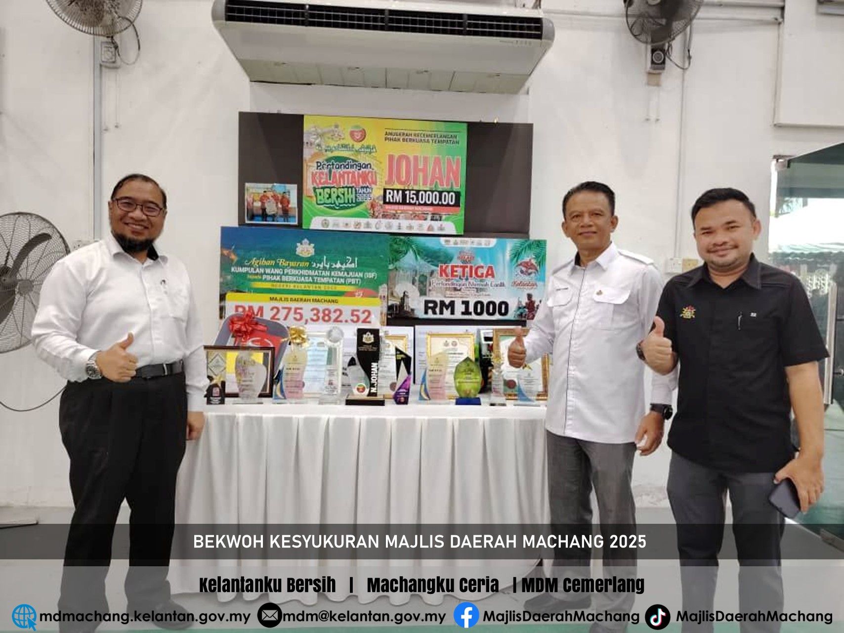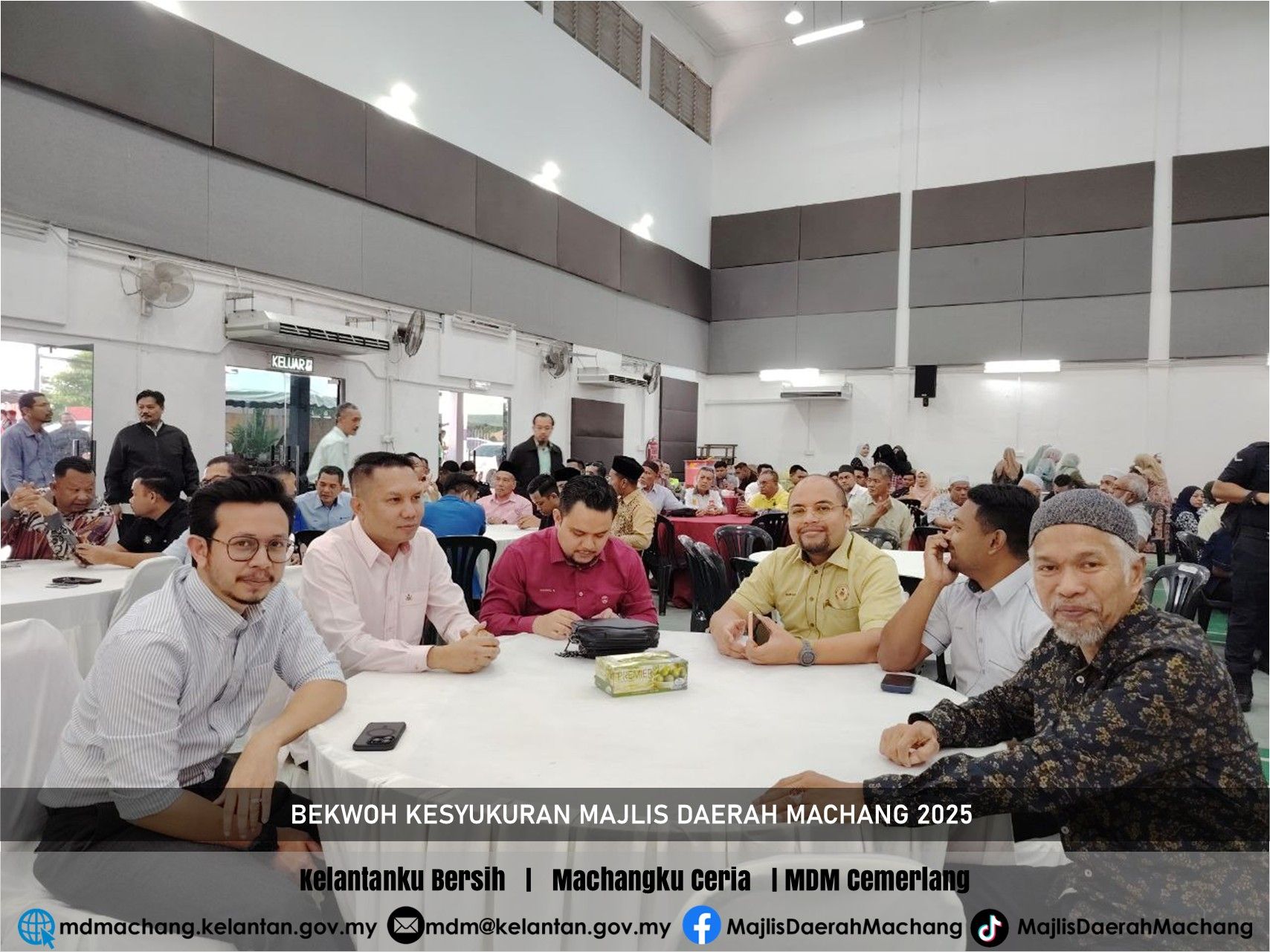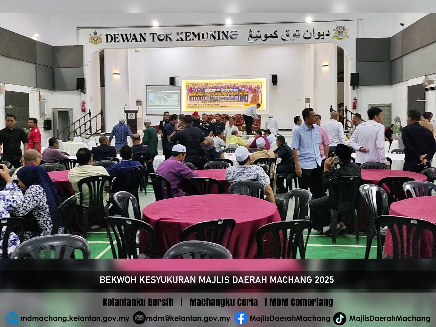 Majlis Daerah Machang merakamkan setinggi-tinggi kesyukuran ke hadrat Allah SWT atas kelancaran penganjuran Bekwoh Kesyukuran Majlis Daerah Machang 2025 yang telah berlangsung dengan jayanya bersama Yang Dipertua bertempat di Dewan Tok Kemuning, Majlis Daerah Machang.